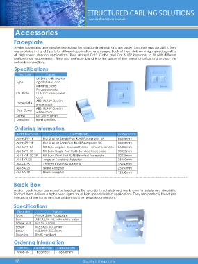 all high speed desktop applications. They accept Cat3, Cat5e and Cat 6 UTP keystones to fit with different