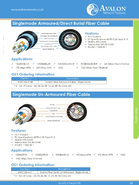 ANFC-SM-X-LT Avalon Fiber Optic Un-Armoured - Single Mode