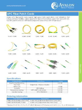 Avalon APC fiber patch cords support high speed data applications over installations that