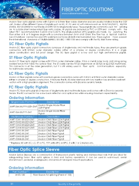 unit. Avalon offers different types of pigtails such as SC, ST, FC and LC with microns such as 62.5/125 (OM1) , 50/125