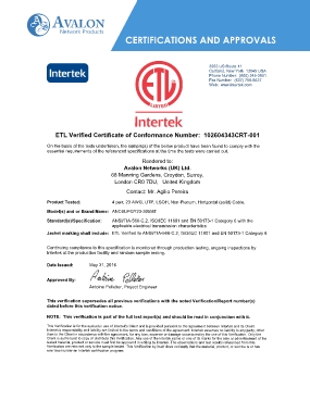 ETL Verified Certificate of Conformance Number: 102604343CRT-001